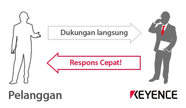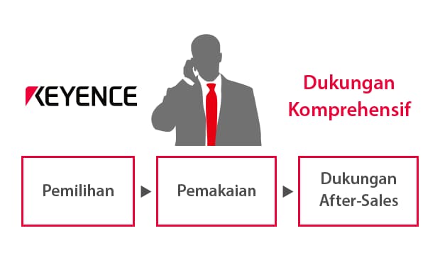 KEYENCE mendukung pelanggan dengan pengetahuan manufaktur dan otomatisasi di lokasi yang menyeluruh. Teknisi penjualan kami siap untuk memberi dukungan yang menyeluruh di setiap tingkat bisnis, dari tahap desain dan riset, hingga pemilihan model, pengoperasian lini dengan petunjuk di lokasi, dan pasca penerapan produk.