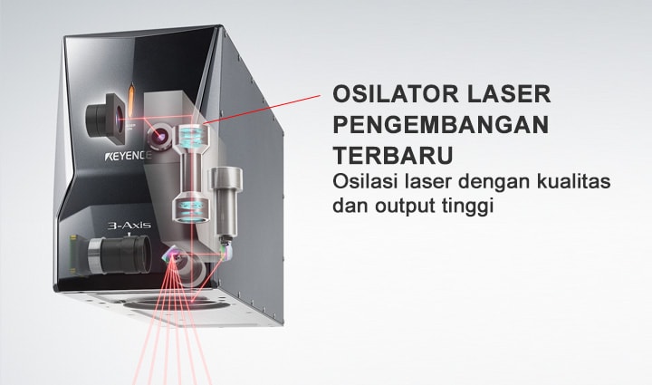 Metode osilasi laser unik ini menggabungkan karakteristik terbaik penanda laser YVO4 dan SERAT. Setelah bertahun-tahun, pengembangan yang KEYENCE lakukan atas osilasi solid state dan serat menghasilkan osilator HIBRID yang saat ini menjadi andalan penanda laser seri -MD-X kami yang baru.