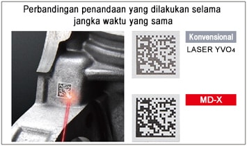 Seri MD-X1500 memiliki daya rata-rata 25 watt atau tiga kali lebih tinggi dibanding model-model YVO4 sebelumnya. Dengan daya rata-rata setinggi itu, penandaan dan pemrosesan menjadi lebih cepat sehingga mengurangi siklus waktu dan meningkatkan produksi. Metode gelombang berlanjut (CW) atau osilasi berdenyut dapat digunakan, sehingga memberi Seri MD-X fleksibilitas untuk menandai dalam berbagai jenis aplikasi. Fleksibilitas ini sangat penting dalam aplikasi penandaan, mulai dari plastik, logam, film tipis hingga foil.
