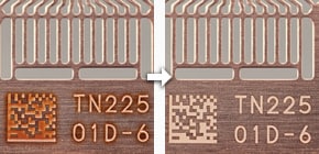 Sensor jarak internal dan kamera dapat melacak posisi benda kerja dan mengoreksi ketidaksejajaran untuk mencegah cacat pada penandaan.