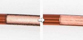 Proses pengupasan yang meminimalkan kerusakan pada kawat inti.