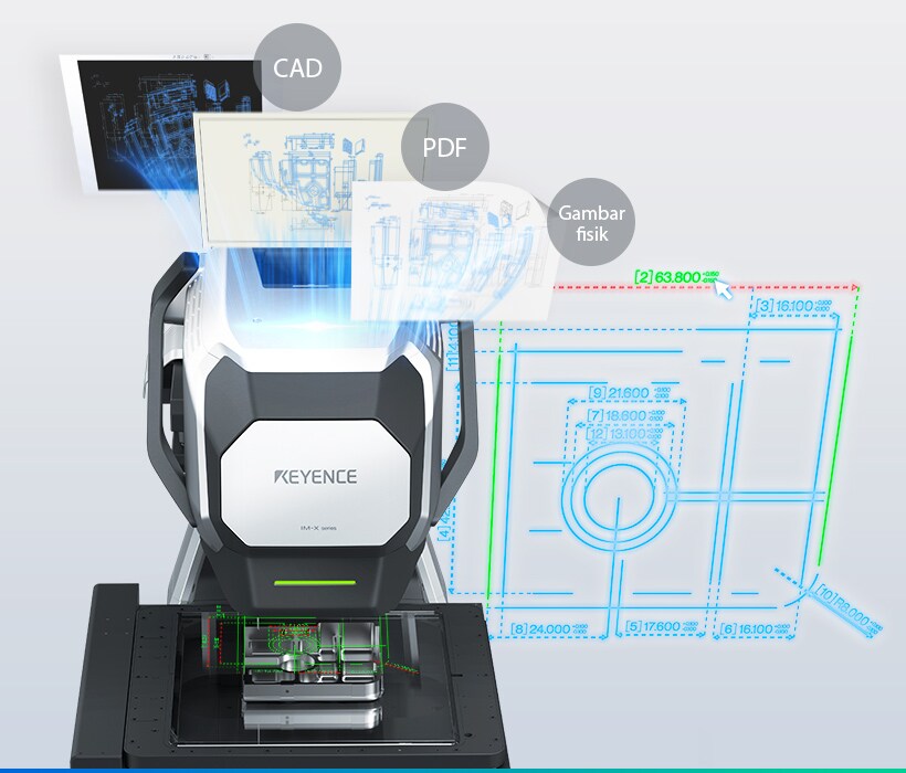Buat program dengan mudah melalui impor gambar CAD, PDF, JPEG, bahkan gambar kertas. Cukup pilih dimensi kritis, nilai desain, dan toleransi untuk membuat program.