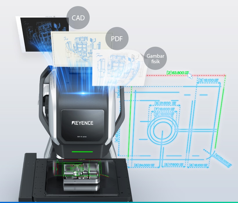 Buat program dengan mudah melalui impor gambar CAD, PDF, JPEG, bahkan gambar kertas. Cukup pilih dimensi kritis, nilai desain, dan toleransi untuk membuat program.