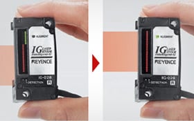 Mikrometer laser CCD multi fungsi Seri IG menyediakan diferensiasi presisi tinggi yang tidak terpengaruh oleh seberapa banyak cahaya yang ditransmisikan target. Seri ini menggunakan line load coupling device (L-CCD) sebagai elemen penerima cahayanya. Alih-alih menggunakan intensitas cahaya yang diterima, seri ini menangkap tepi sinar laser yang ditransmisikan, sehingga dapat melakukan diferensiasi yang akurat dan stabil dengan keterulangan 5 μm dan linearitas ±0,1%. Hal ini membuat Seri IG mampu mendukung berbagai aplikasi, termasuk deteksi tepi dan pemosisian kaca bening, pengenalan OD benda kerja yang tepat, kontrol umpan balik saat mendeteksi tepi lembaran, dan pengukuran celah gulungan. Monitor pemosisian pada unit utama memfasilitasi penyelarasan sumbu optik saat memasang baru dan selama penggantian.