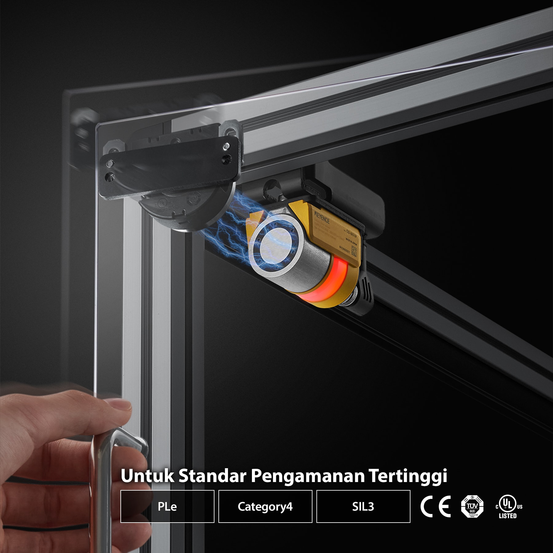 Safety interlock switch adalah perangkat keamanan yang digunakan untuk memeriksa apakah pelindung yang dapat digerakkan seperti pintu pagar pengaman dan penutup dalam keadaan terbuka atau tertutup. Safety interlock switch Seri GS-M dari KEYENCE menggunakan prinsip penguncian elektromagnetik dan aktuator fleksibel untuk mengurangi efek pergerakan dan ketidaksejajaran pintu guna penguncian yang mudah. Desain yang sangat ringkas dapat digunakan dengan segala jenis pintu dan dapat dipasang di mana saja. Seri GS-M menawarkan pengamanan yang unggul selain kegunaan dan keandalan yang diperlukan untuk lokasi manufaktur tanpa menghambat produktivitas.
