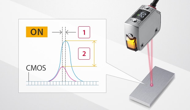 Seri LR-X mendeteksi target berdasarkan posisi, bukan intensitas lampu/intensitas cahaya. Hal ini memungkinkan pendeteksian target yang stabil terlepas dari warna, sifat permukaan, atau bentuknya. Dengan ini, Seri LR-X dapat digunakan dalam berbagai macam aplikasi, termasuk aplikasi dengan perubahan posisi kecil.