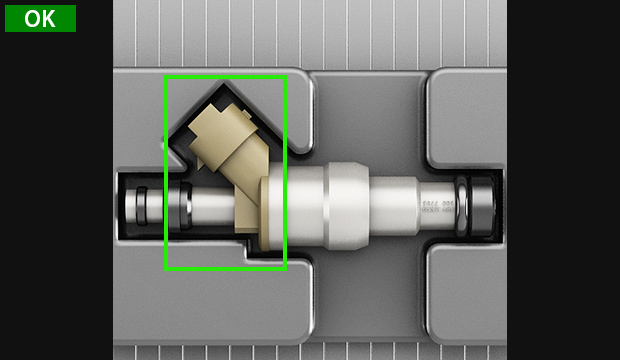 Pembedaan produk injektor dapat dilakukan berdasarkan perbedaan warna bagian komponen. Pelacakan membuat deteksi dapat dilakukan bahkan jika posisi deteksi berubah.