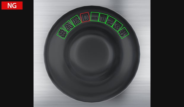 Seri IV4 dapat memeriksa penandaan pada komponen karet, dan deteksinya stabil bahkan jika karakter memiliki warna yang sama dengan latar belakang.