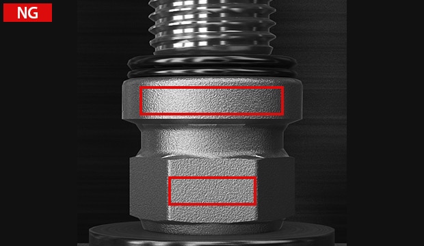 Memeriksa penandaan dengan andal pada busi dapat dilakukan bahkan untuk target dengan kondisi permukaan yang menyulitkan.