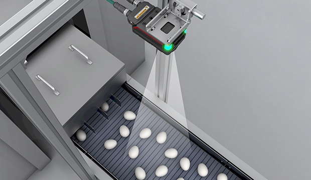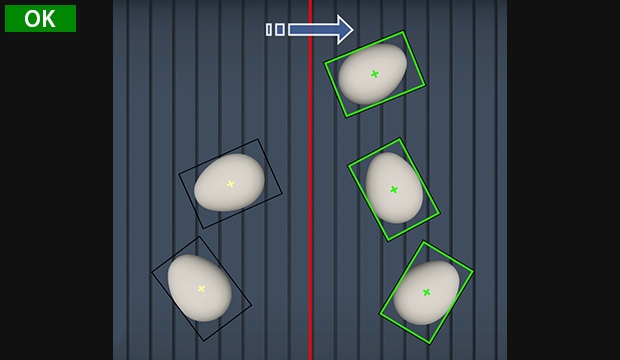 Penghitungan jumlah telur yang melewati konveyor yang andal dapat dilakukan terlepas dari posisi atau arah telur.