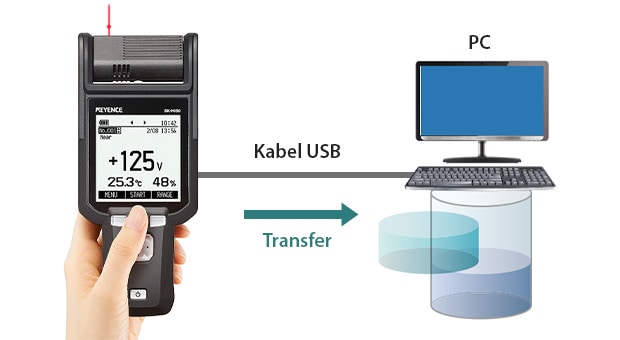 Hingga 100 data terukur dapat direkam dalam memori buffer internal sensor. Data yang direkam dapat ditransfer melalui kabel USB ke PC dan disimpan sebagai data CSV.