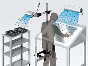Blower eliminasi listrik statis berakurasi dan berkecepatan tinggi dalam area luas. SJ-F2000/5000 adalah ionizer yang menetralkan permasalahan induksi statis dengan menghilangkan listrik statis dari lingkungan, produk, tubuh manusia dan bagian periferal. Performa eliminasi listrik statis tercepat dikelasnya, keseimbangan ion presisi tinggi dan fungsi penyesuaian aliran udara yang mendukung berbagai pengaturan untuk lingkungan bebas listrik statis. Karena Ion disuplai pada keseimbangan optimal dengan muatan elektrostatik, tidak ada pengaturan awal yang rumit diperlukan selama implementasi atau pemeliharaan untuk menghasilkan eliminasi listrik statis yang lebih efektif. Blower eliminasi statis Seri SJ-F2000/5000 menawarkan performa tinggi dan luar biasa pada tingkat yang lebih tinggi. Dengan fungsi yang menekan keausan dan penumpukan kotoran di probe eliminasi, sistem kontrol listrik statis menerapkan struktur yang memungkinkan pemeliharaan mudah, bodi ringkas dan membutuhkan sedikit ruang untuk pemasangan.