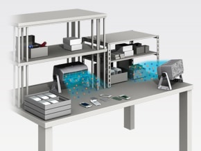 Kipas berdaya tinggi dan struktur kisi-kisi telah digabungkan untuk menyediakan area eliminasi listrik statis yang luas dengan kecepatan tercepat di kelasnya.