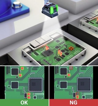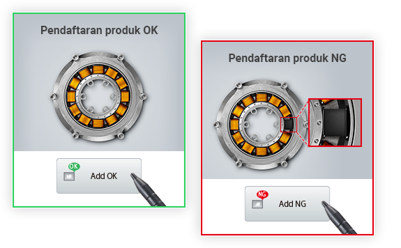 Cukup daftarkan produk OK dan produk NG agar secara otomatis Anda dapat mengonfigurasi pengaturan optimal. Tanpa variasi berbasis pengguna yang perlu dikhawatirkan, deteksi yang stabil pasti bisa didapatkan oleh semua pengguna.