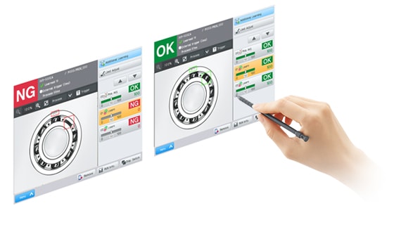 Deteksi berbasis AI Cukup daftarkan produk OK dan NG untuk mengonfigurasi pengaturan yang optimal secara otomatis untuk deteksi kehadiran berbasis AI.