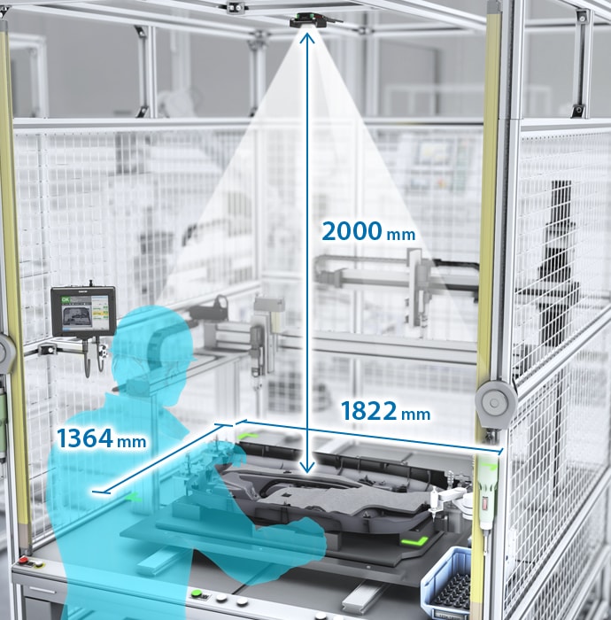 Saat menggunakan penerangan infra merah, operator tidak terganggu meskipun kepala sensor dipasang 2000 mm di atas ruang kerja.