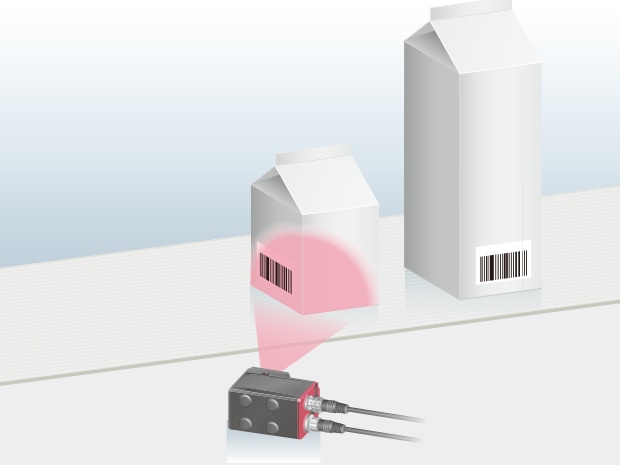 Membaca produk dengan kode yang tercetak di tempat berbeda biasanya membutuhkan dua pembaca. SR-2000 bidang lebar dapat membaca kode yang tercetak di lokasi berbeda, sehingga tidak memerlukan pembaca kedua.