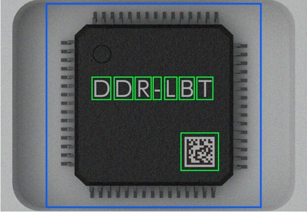 Membaca karakter/kode 2D yang ditandai dengan laser pada permukaan cip IC. Visi mesin tunggal dapat mengenali kedua karakter, seperti nomor suku cadang dan kode 2D secara bersamaan.