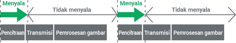 Penerangan kontinu (termasuk waktu PENYALAAN yang terbuang)