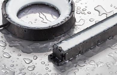 Lampu yang resistan lingkungan tersedia dalam jajaran tipe batang dan cincin. Gabungkan dengan lensa dan kamera yang resistan lingkungan untuk penggunaan yang aman di lingkungan yang terpapar bubuk, debu, tetesan, dan cipratan air.