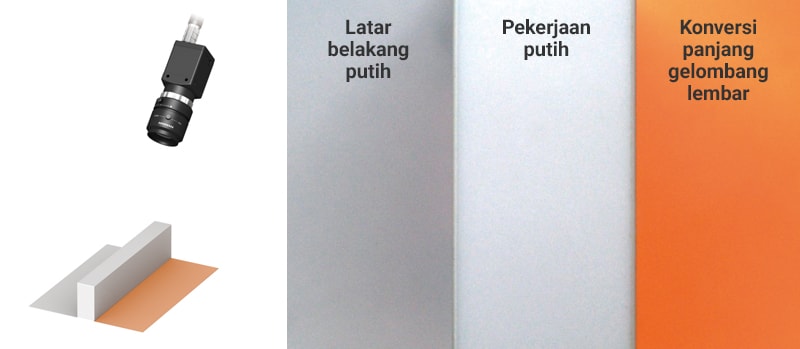 Lembar Konversi Panjang GelombangMemungkinkan inspeksi dengan lampu latar di lokasi-lokasi yang sebelumnya sulit dipasangi lampu latar.