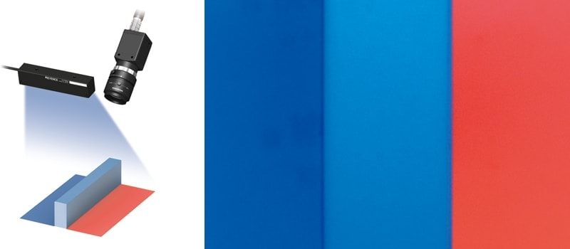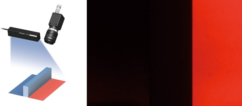 Misalnya tidak ada ruang untuk memasang lampu latar saat melakukan inspeksi permukaan cairan pada mesin pengisi dan lampu refleksi terpaksa digunakan. Bahkan meski lampu dipasang di ruang sempit, gambar cahaya latar dapat diperoleh dengan membungkus lembar konversi panjang gelombang dengan objek yang berputar.