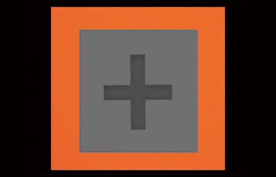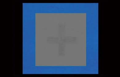Inilah gambar yang diperoleh saat cahaya biru dipancarkan. Latar belakang putih dan lembar putih dicitrakan dalam warna biru. Lembar konversi panjang gelombang mengubah cahaya biru menjadi warna oranye kemerahan dan memantulkan warna ini.