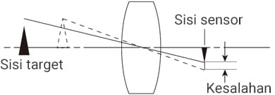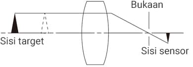 Seri CA-LM menggunakan sekelompok lensa telesentrik depan untuk mempertahankan ukuran tetap ringkas dan performa tinggi. Meski lensa berukuran kecil, sistem telesentrik mempertahankan ukuran target meski terjadi pergerakan titik fokus secara vertikal. Ini karena sinar utama target sejajar terhadap sumbu optik lensa depan sehingga kesalahan pengukuran dapat dihilangkan atau diminimalkan.
