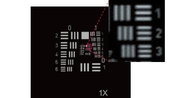120 baris diperoleh untuk resolusi pusat dan tepi-tepinya, atau setara kemampuan penuh sebuah kamera 4/3", 21 megapiksel.