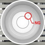 Benda kerja berbentuk DPF (diesel particulate filter) atau katalis sangat besar ukurannya, sehingga inspeksi penampilan untuk mencari cacat seperti retakan dan sumbatan sangat sulit dilakukan. Akan tetapi, dengan kamera 21 megapiksel, kamera dengan jumlah piksel terbesar di industri ini, inspeksi yang sangat akurat bukan masalah.